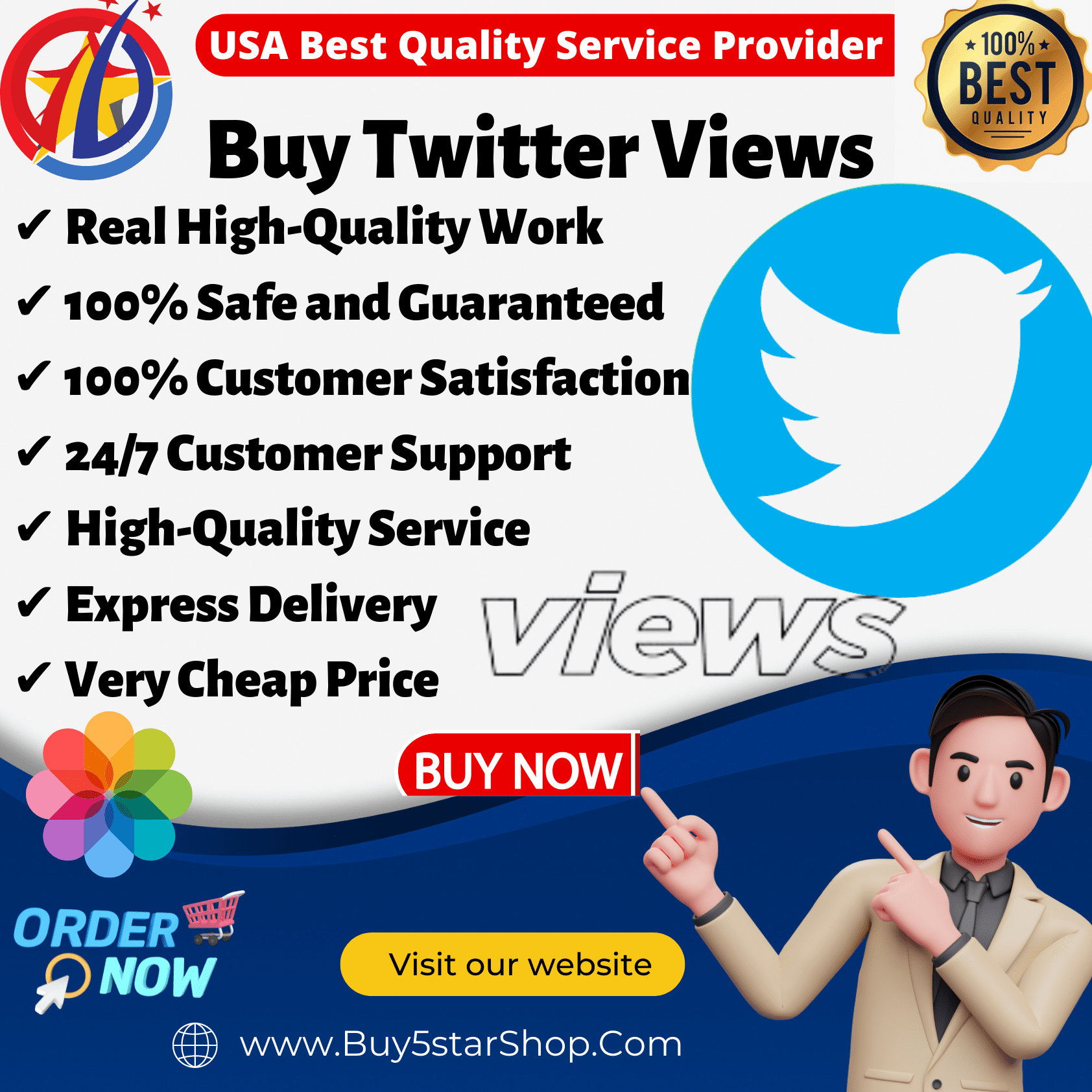 Buy5starShop.com is the best choice for buying Twitter views. We are proud to offer our customers the best services and products, which will help you to get more followers on Twitter in a short period of time.